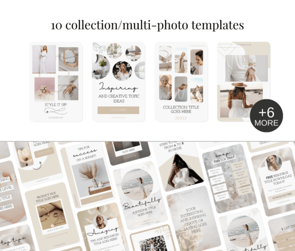 Elegant style Pinterest templates, in gorgeous natural beige tones, designed to catch the eye of your ideal audience on Pinterest.