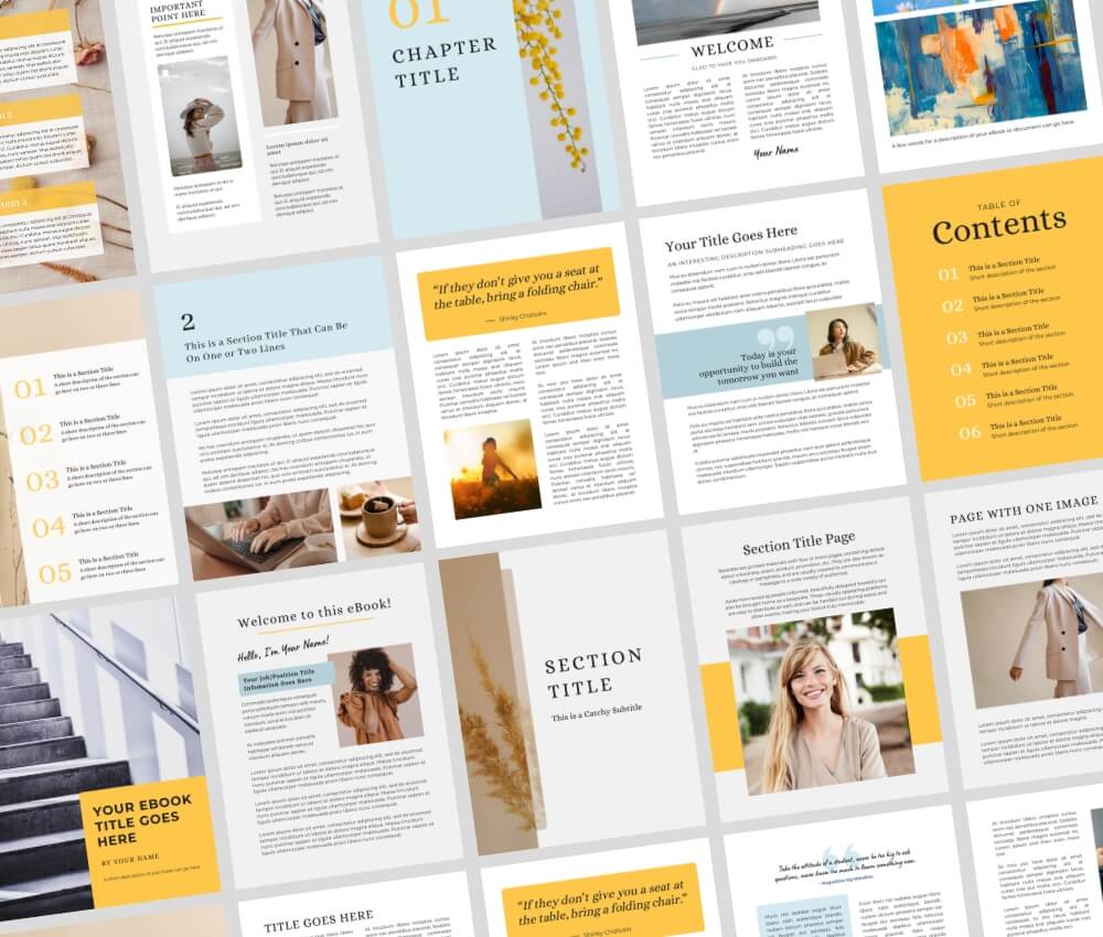 With 60 versatile page templates, this kit includes a variety of different page templates to suit your needs including; welcome pages, article pages, lists, chapter section pages, and much more! Each template is fully customizable in Canva, so you can easily add your own branding, colors, and content to make it your own.